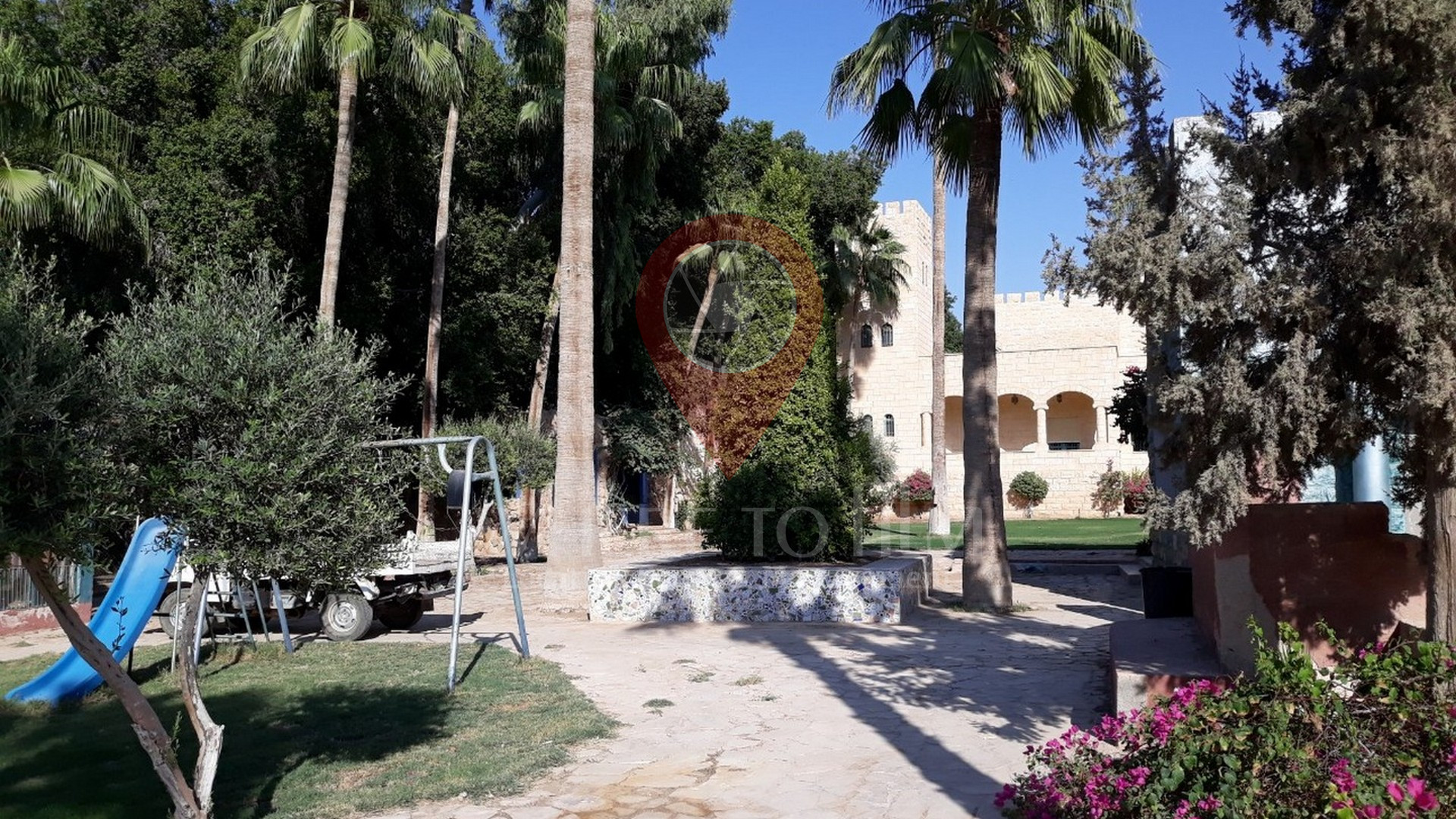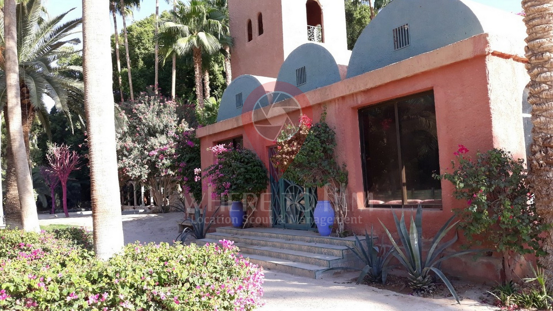 With a beautiful red mud exterior this Moroccan themed house is part of a larger compound with a variety of cultural themes, featuring large gardens, a lake and many trees