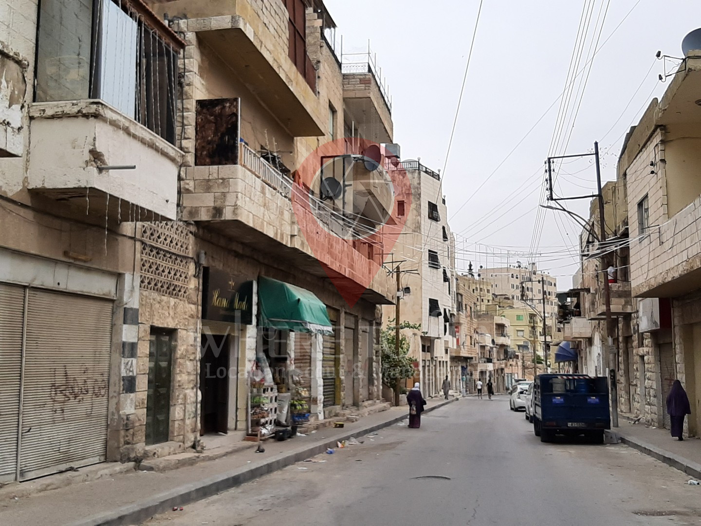 One of the oldest streets in the city of Amman, situated on the mountain side with a view of the older city and downtown, featuring many old stone buildings and staircases