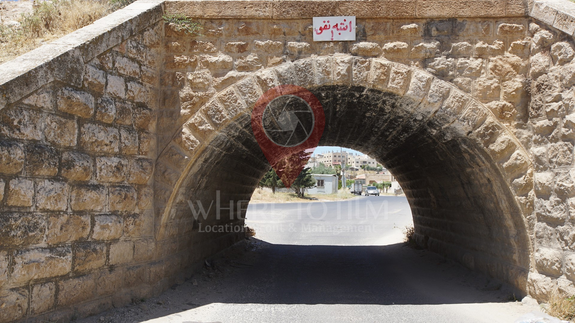A Narrow and short tunnel on a quite empty street on the outskirts of Amman, with near-empty buildings and an abandoned railroad nearby.
